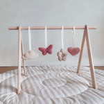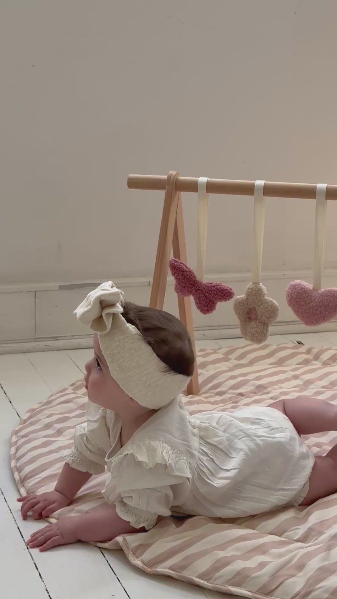 The updated Lovely Daisy baby play gym adds the perfect touch to your little girl’s nursery. A sweet butterfly now joins the pink and beige plush toys, each with a gentle rattle to support sensory development and capture your baby’s attention. Crafted from non-toxic materials and designed for softness and comfort, the Lovely Daisy gym creates a beautiful and engaging space for playtime.