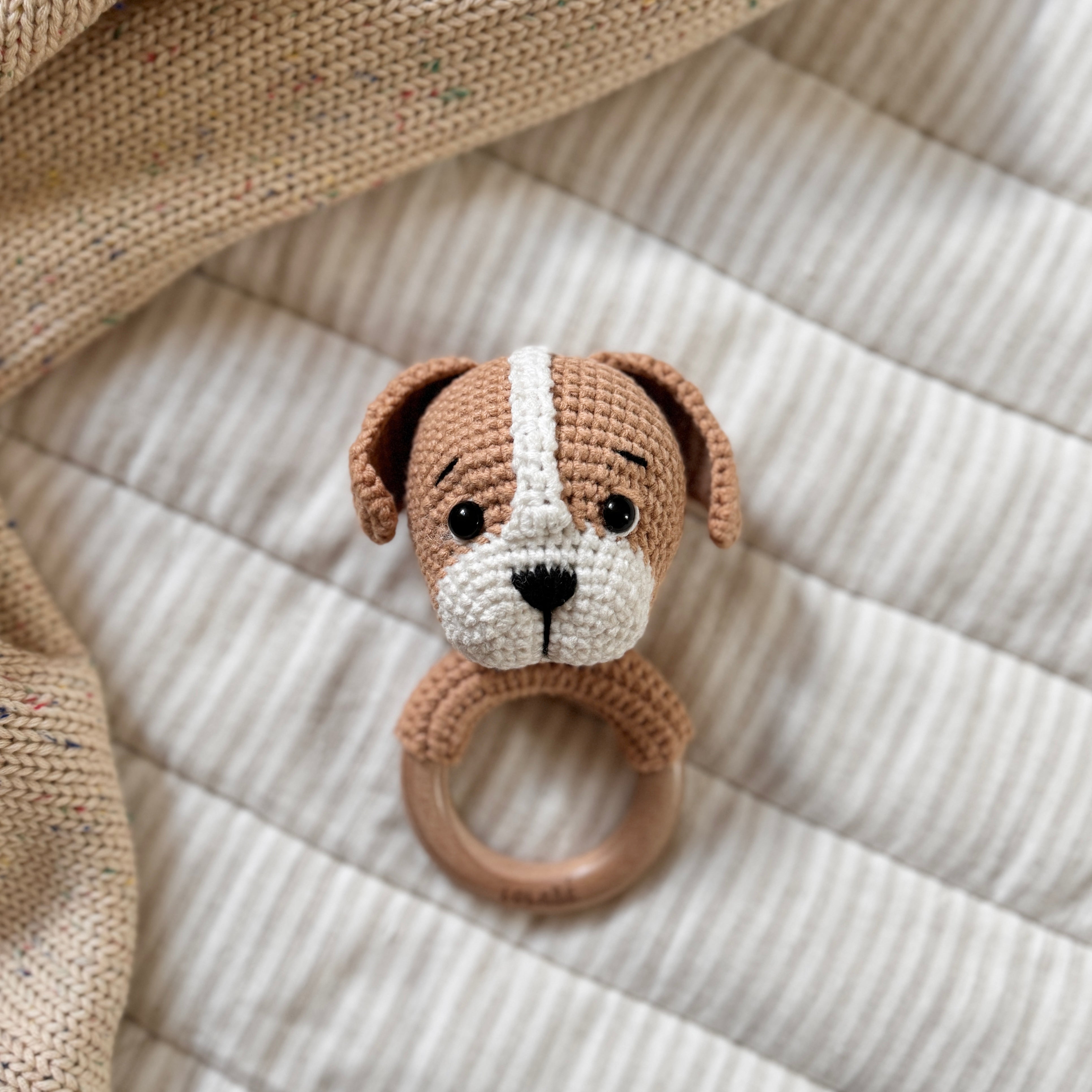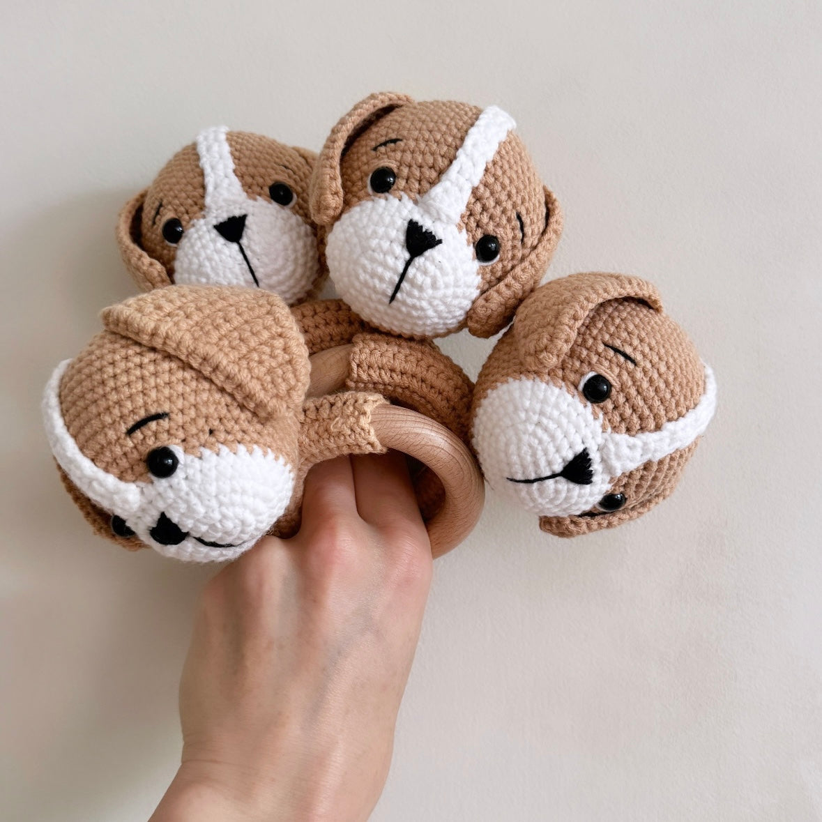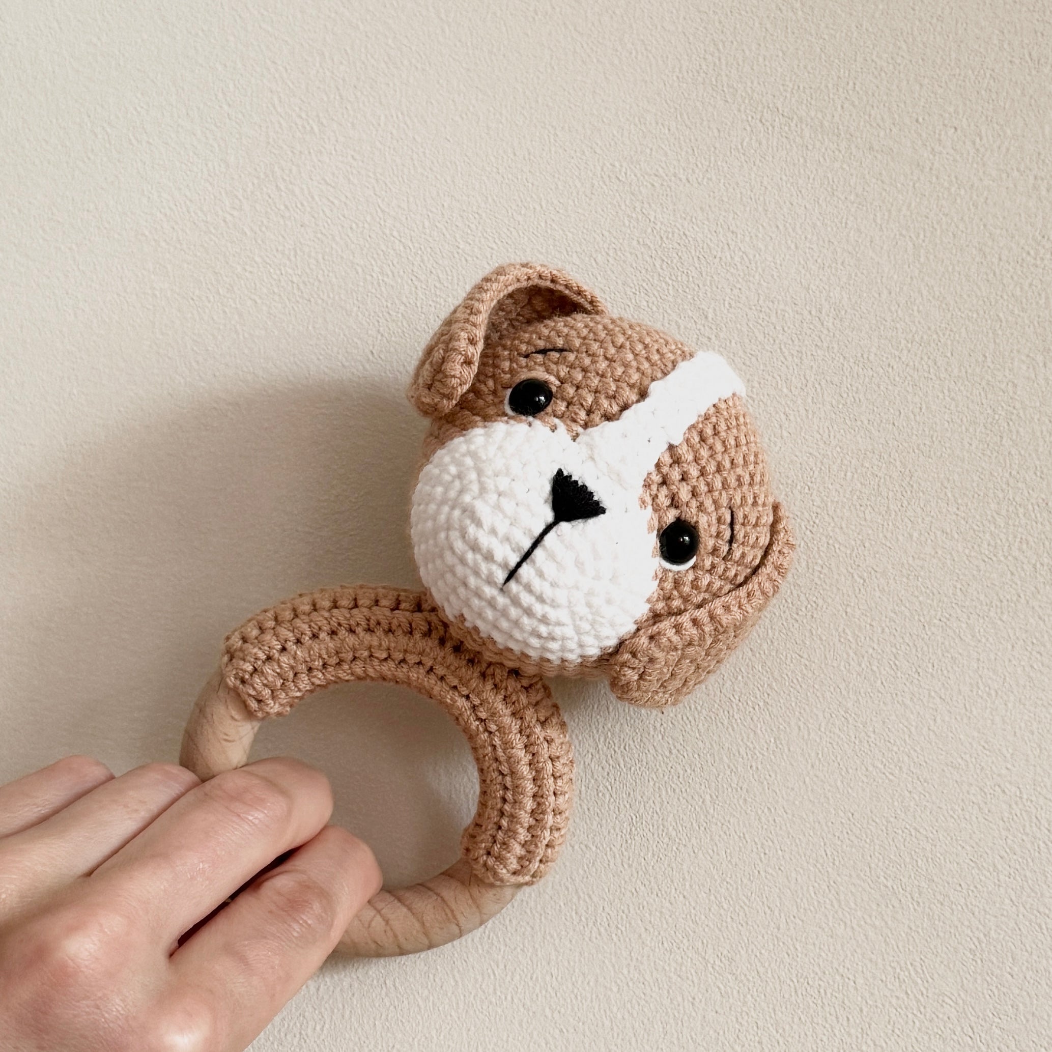 Introducing Lucky the Cute Puppy, a handmade rattle crafted with care from 100% cotton and smooth, non-toxic beech wood. Lucky’s soft crochet design, paired with a gentle rattle sound, makes it the perfect sensory toy for your little one.